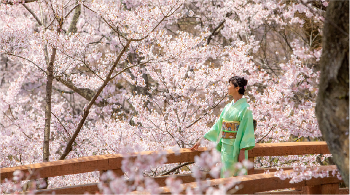 朝陽に輝く花びらや夕暮れに染まる桜景色。