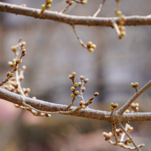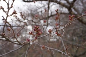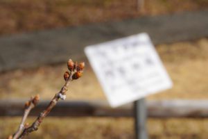 ≪2025年3月30日:つぼみ≫ 寒のもどりを感じるここ数日の高遠。 つぼみたちの成長もすこし足踏み状態です。 *南口 標本木