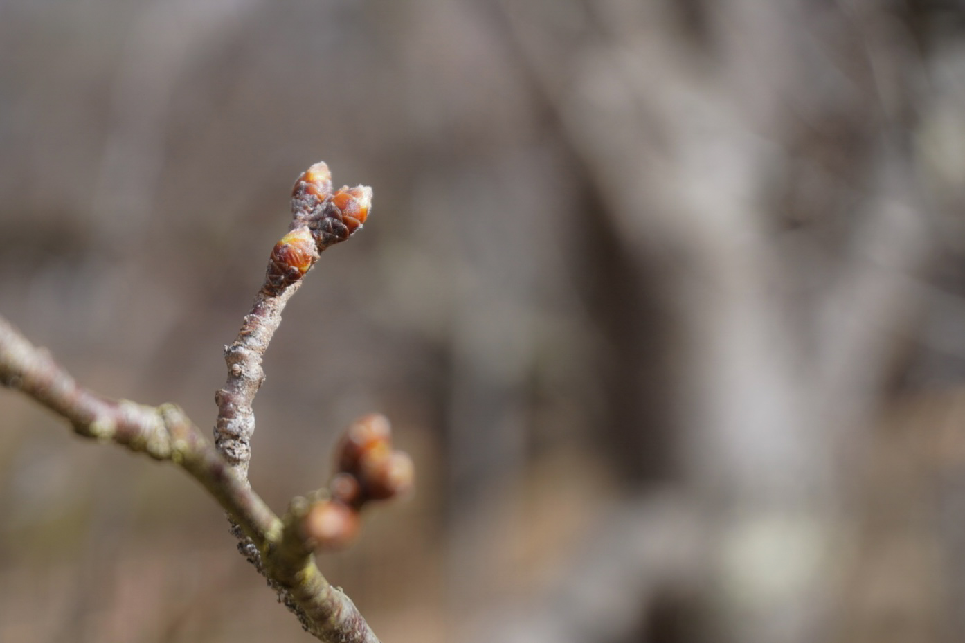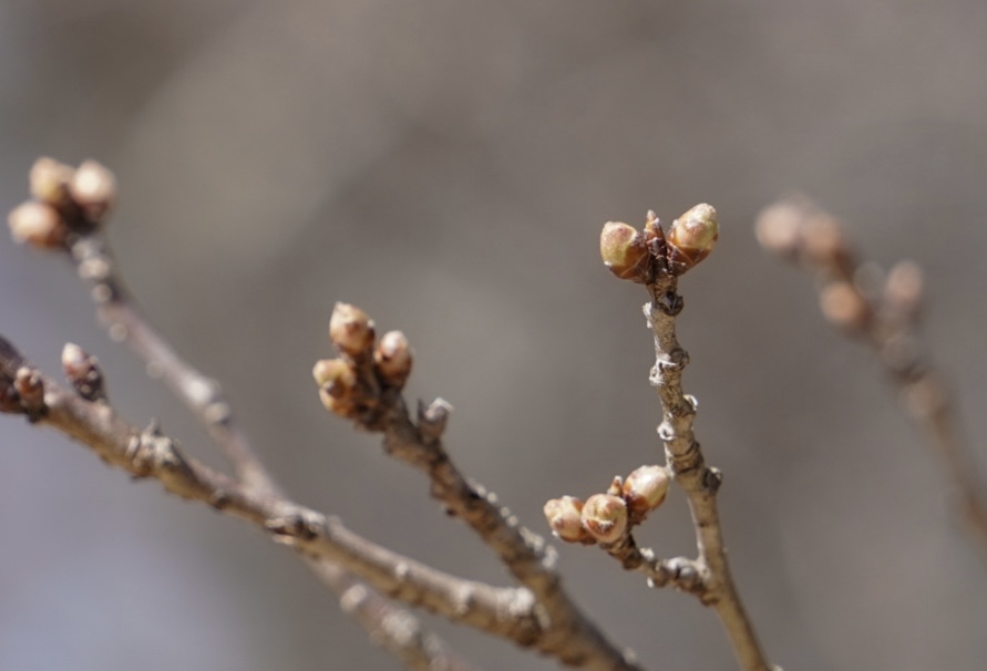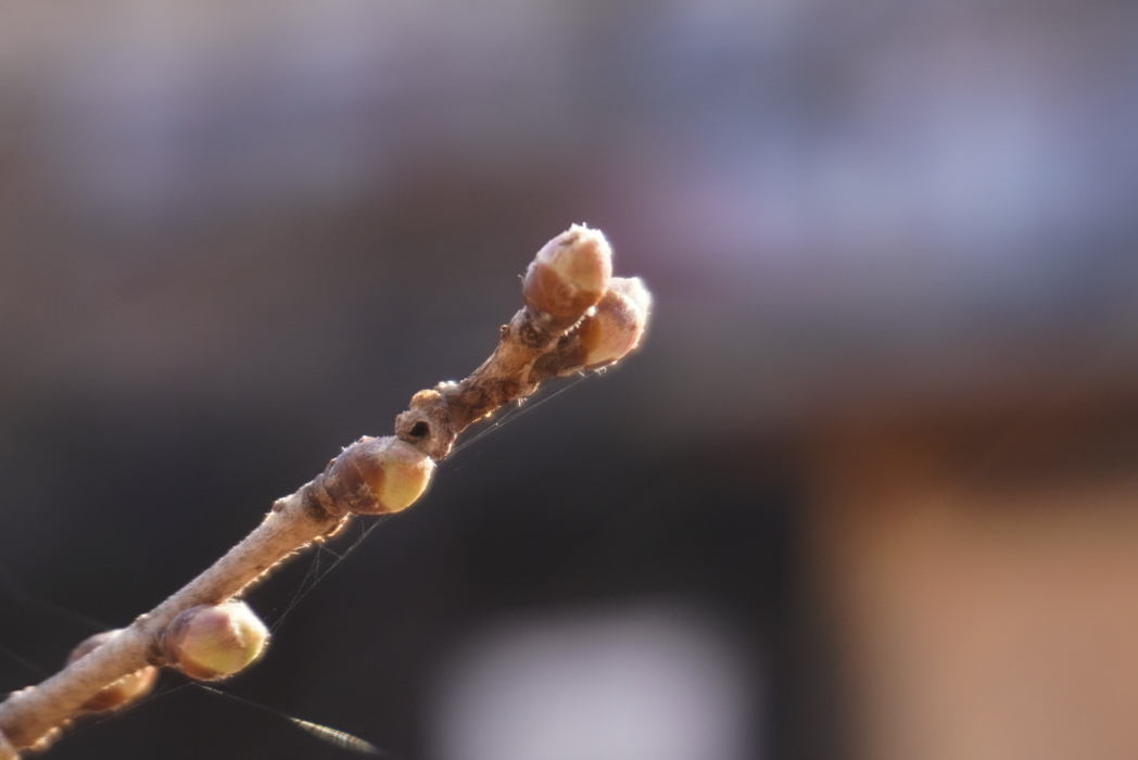 ここ数日 春到来を感じるような暖かな陽気が続きますが、園内の桜はまだ固いつぼみ状態。固い茶色の皮の下で、春への準備をゆっくり進めているようです。