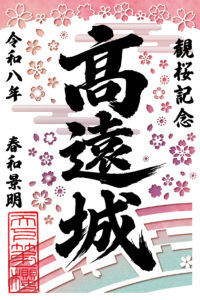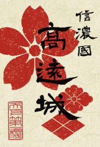 | ② 桜家紋版 御城印 | 高遠城の歴史をモチーフに、伊那市や高遠町にゆかりの深い画家、書家、篆刻家の先生にご協力いただき作成しました。4枚シリーズとして1年に1作品を発表します。