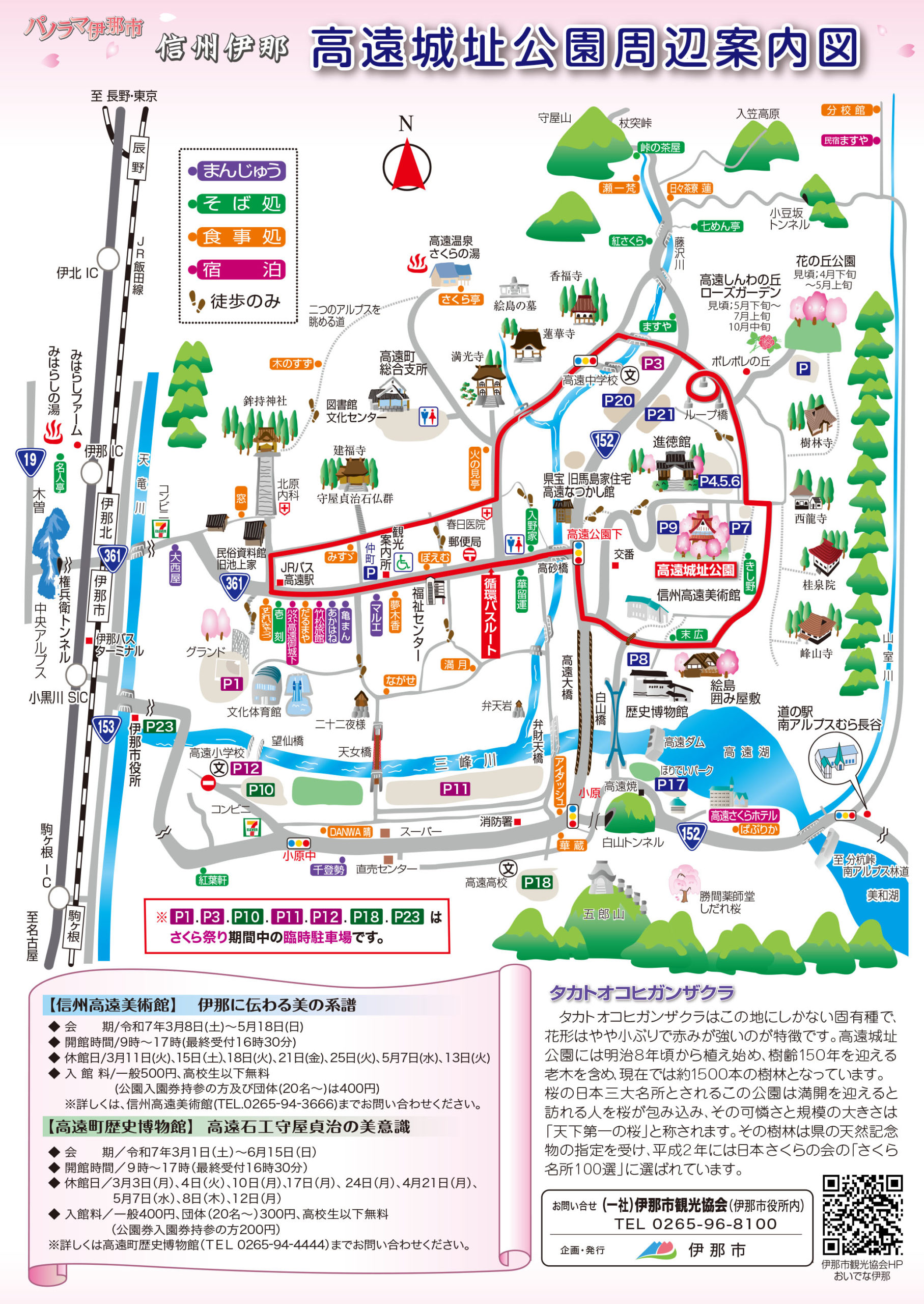 • P3高遠中学校グラウンドMAP城址公園まで(徒歩)約15分利用可能期間祭り期間中毎日